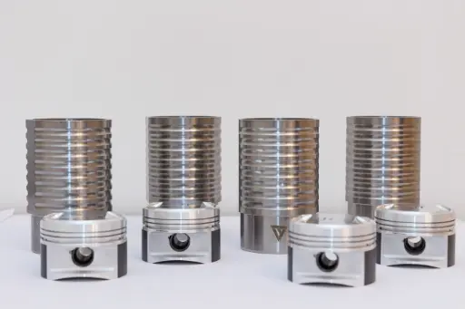 This kit combines forged 4320 alloy pistons with advanced ductile iron cylinder liners — offering superior mechanical properties compared to conventional CrMo alloy sleeves.